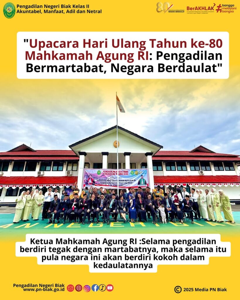 Semoga melalui kegiatan ini, seluruh aparatur Pengadilan Negeri Biak semakin solid, profesional, dan berkomitmen dalam memberikan pelayanan peradilan yang cepat, sederhana, dan transparan demi terwujudnya peradilan yang modern dan berintegritas. ⚖️
