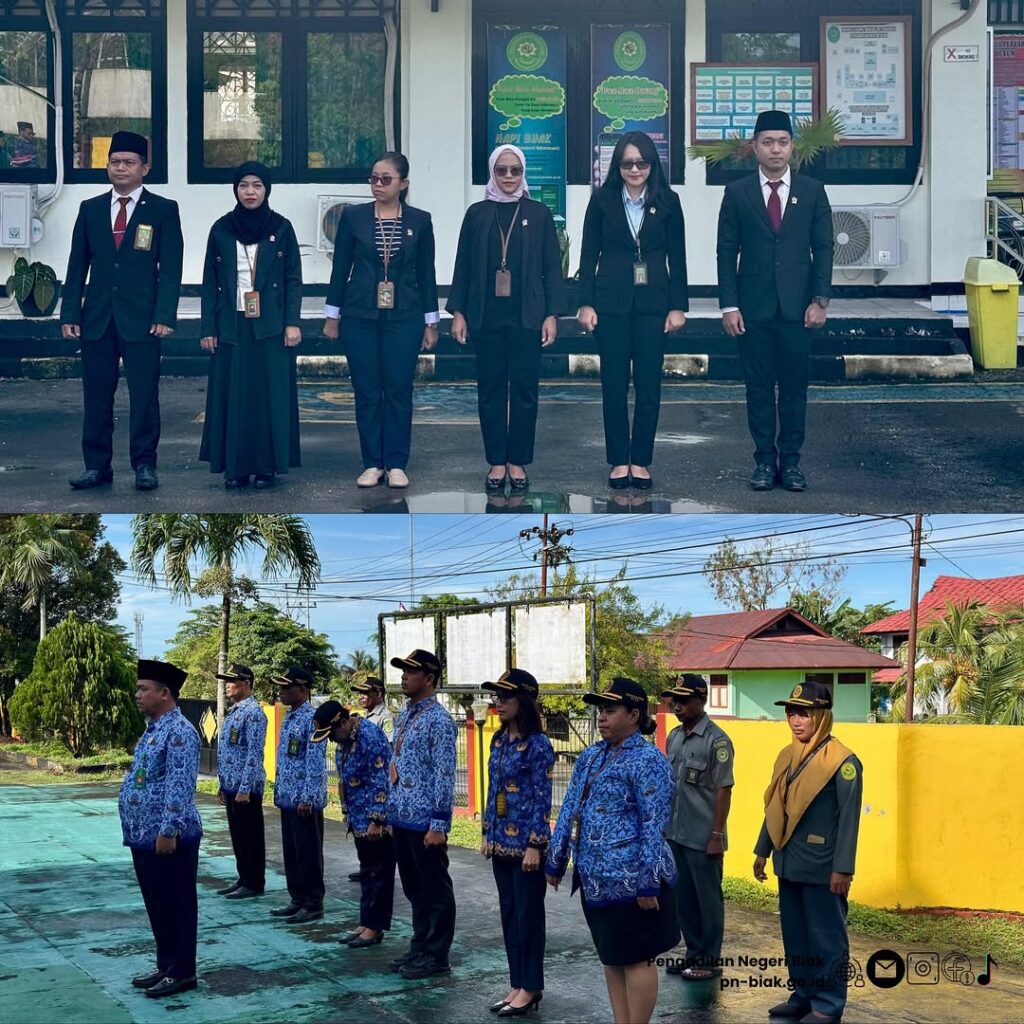 Biak, 20 Mei 2025 — Pengadilan Negeri Biak melaksanakan Upacara Peringatan Hari Kebangkitan Nasional (Harkitnas) ke-117 tahun 2025 dengan penuh khidmat. Bertindak sebagai pembina upacara, Wakil Ketua Pengadilan Negeri Biak, Ibu Gracely Novendra Manuhutu, S.H, memimpin jalannya upacara dengan semangat nasionalisme dan kebersamaan.