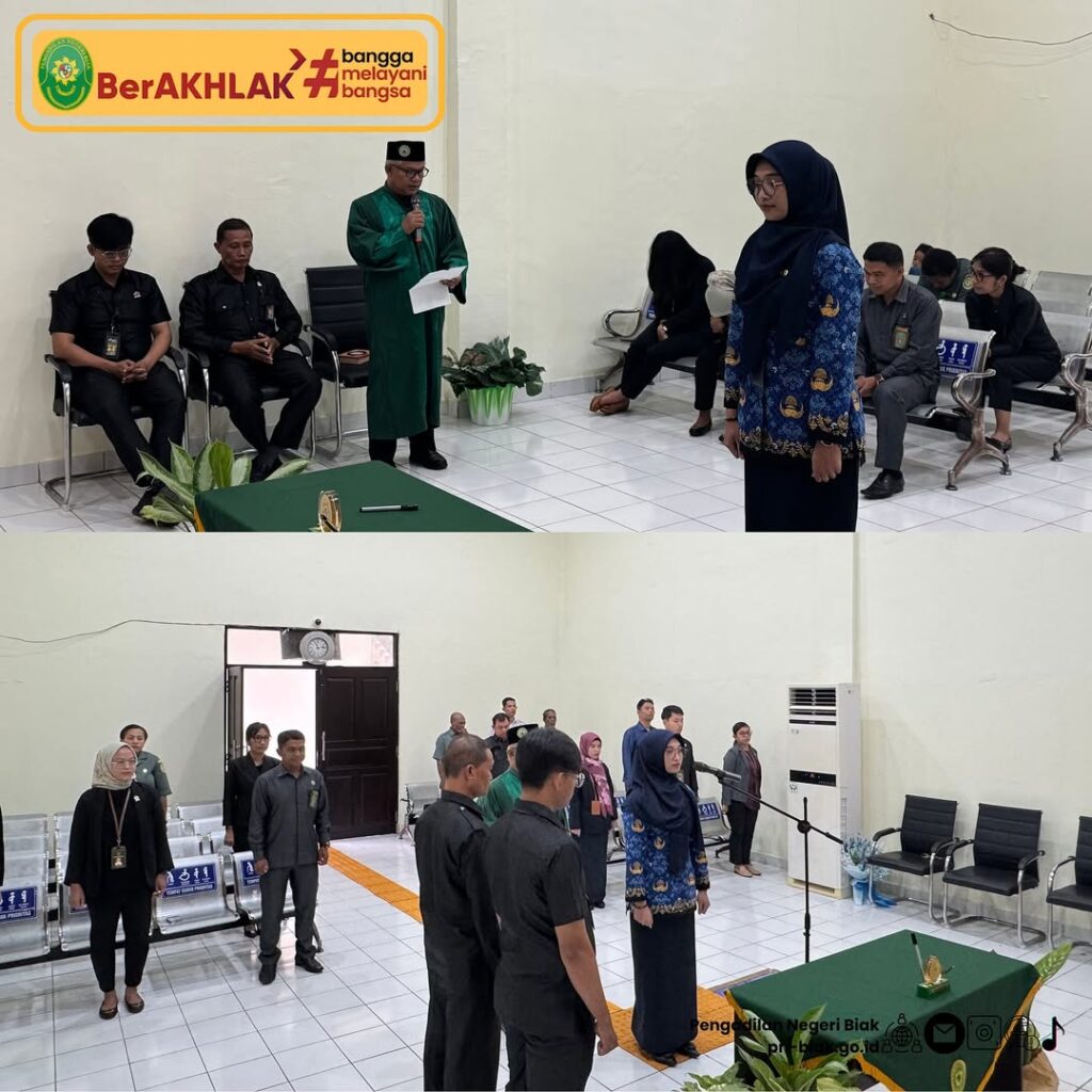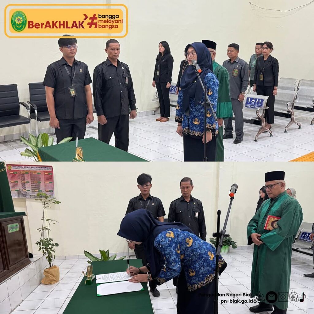 Pengambilan sumpah dipimpin langsung oleh Wakil Ketua Pengadilan Negeri Biak, Ibu Gracely Novendra Manuhutu, S.H dan disaksikan oleh para rohaniwan serta saksi internal sesuai dengan ketentuan yang berlaku.